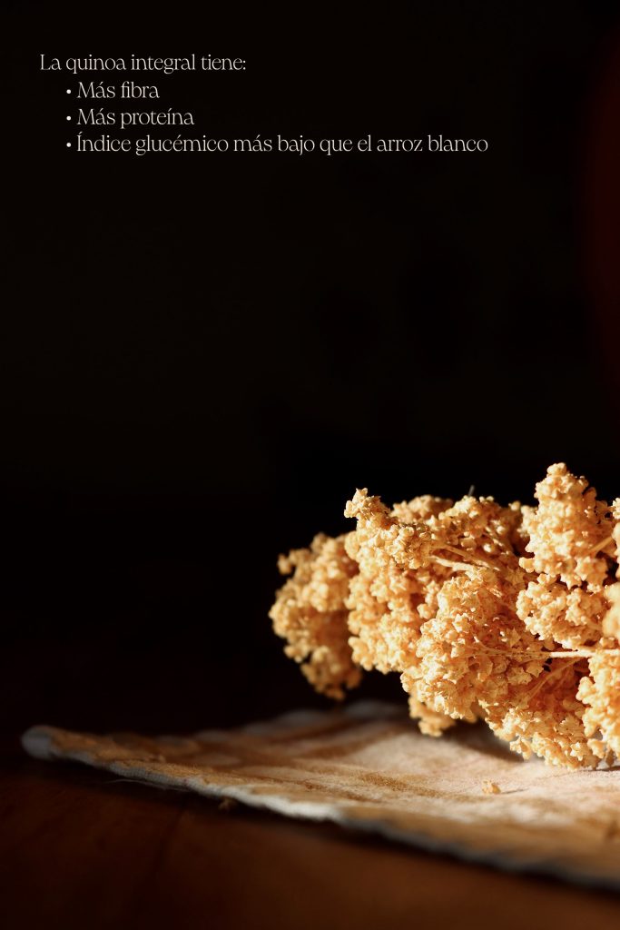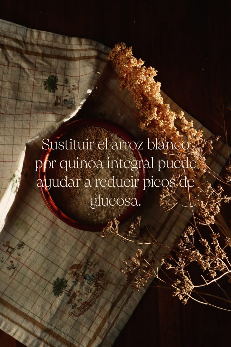 -> Sustituir el arroz blanco por quinoa integral puede ayudar a reducir picos de glucosa.
